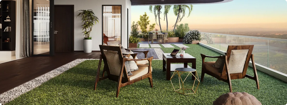 Sky penthouses often include large terraces or garden decks. These outdoor areas become part of your daily life. Morning tea, evening walks, and family time feel special here.