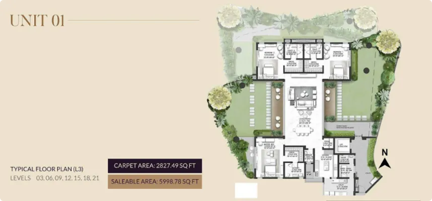 Chaithanya Sānkhya is a prime example, offering incredibly spacious homes with a total area of 6,500 sq. ft.* and a generous 3,400 sq. ft.* of living space that extends onto a private garden deck.